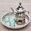 Das Teeset besteht aus der Teekanne FUGO S, zwei BOK Teegläsern und dem Silbertablett LOUISE M.